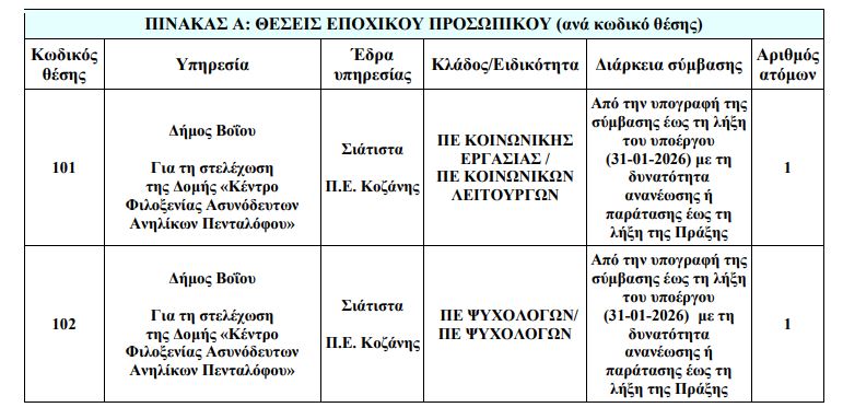 Δύο θέσεις εργασίας στο Δήμο Βοΐου για τη λειτουργία του Κέντρου Φιλοξενίας Ασυνόδευτων Ανηλίκων Πενταλόφου