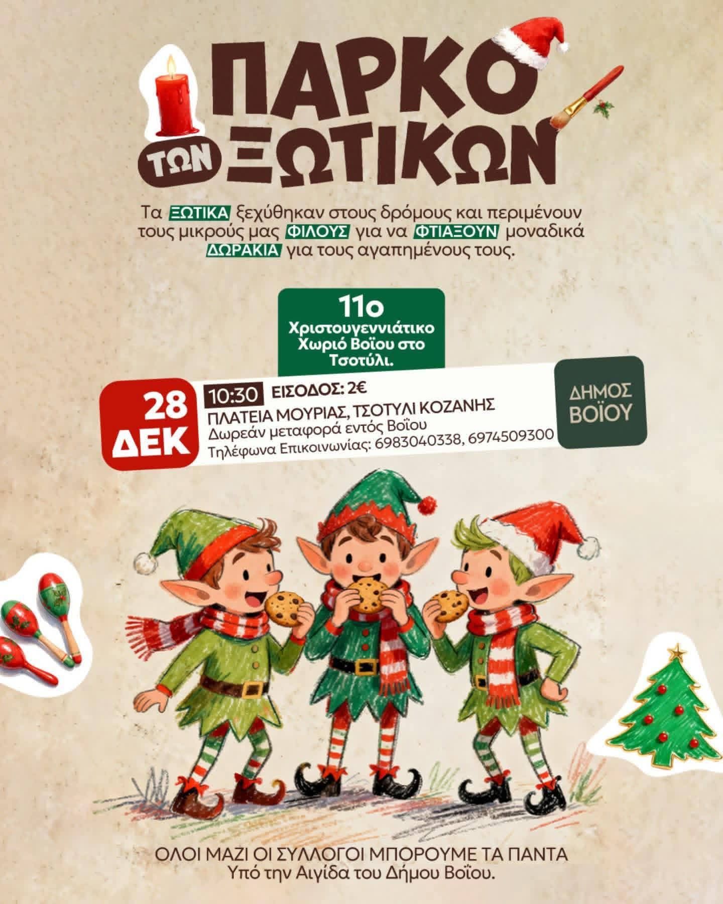 Το Πάρκο των Ξωτικών πραγματοποιείται υπό την αιγίδα του Δήμου Βοΐου, με τη συμμετοχή συλλόγων της περιοχής, αποδεικνύοντας για ακόμη μία φορά ότι όταν είμαστε όλοι μαζί, μπορούμε να κάνουμε όμορφα πράγματα για τον τόπο μας.